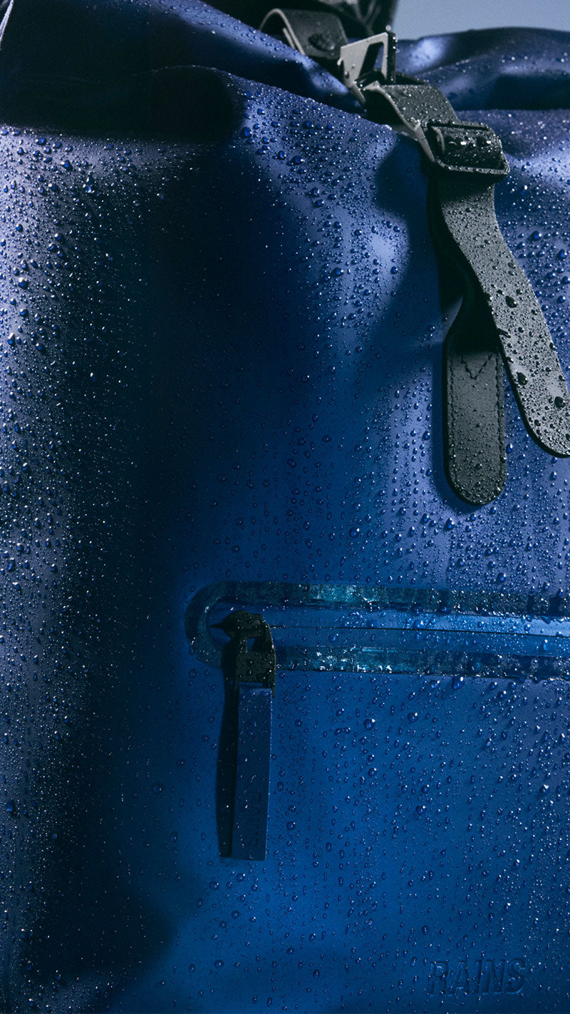 Hilo Weekend Bag Large er fremstillet i Rains’ vandtætte signatur PU-materiale, som er designet til at være stærkt og holdbart med en glat finish.