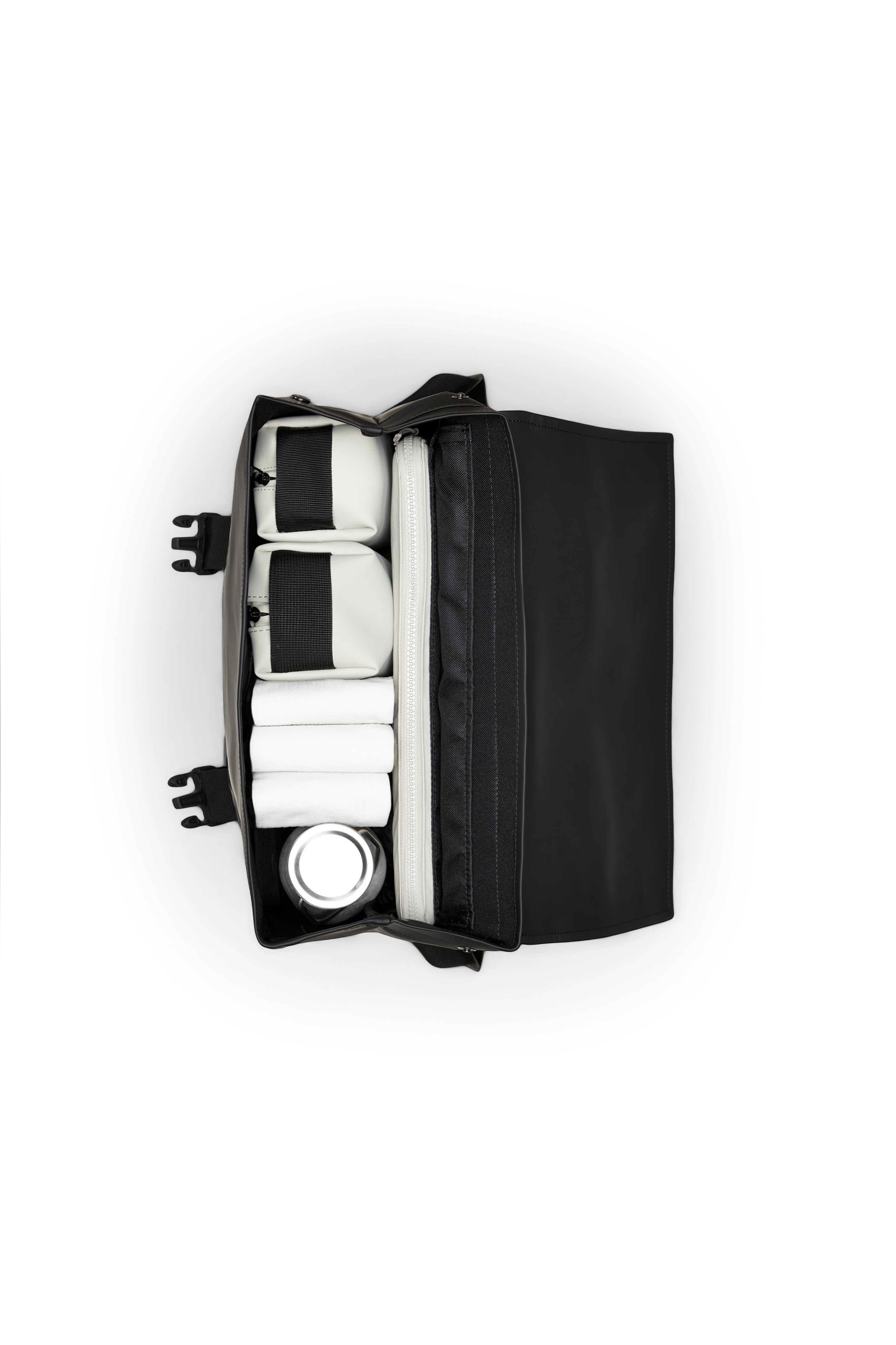 Trail MSN Bag nyfortolker den klassiske skoletaske i en minimalistisk, urban silhuet med to vævede stropper samt Rains’ signaturspænder foran.