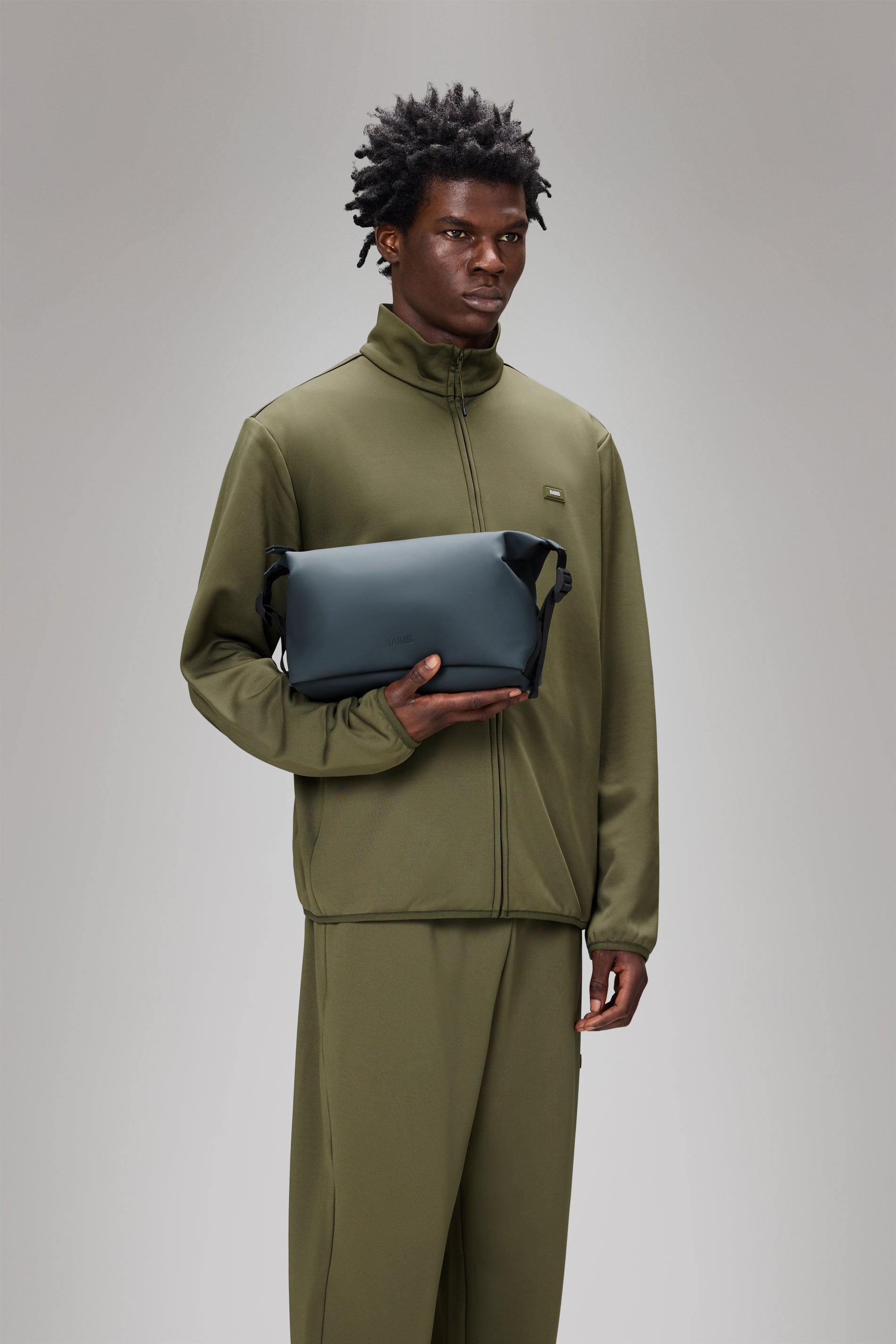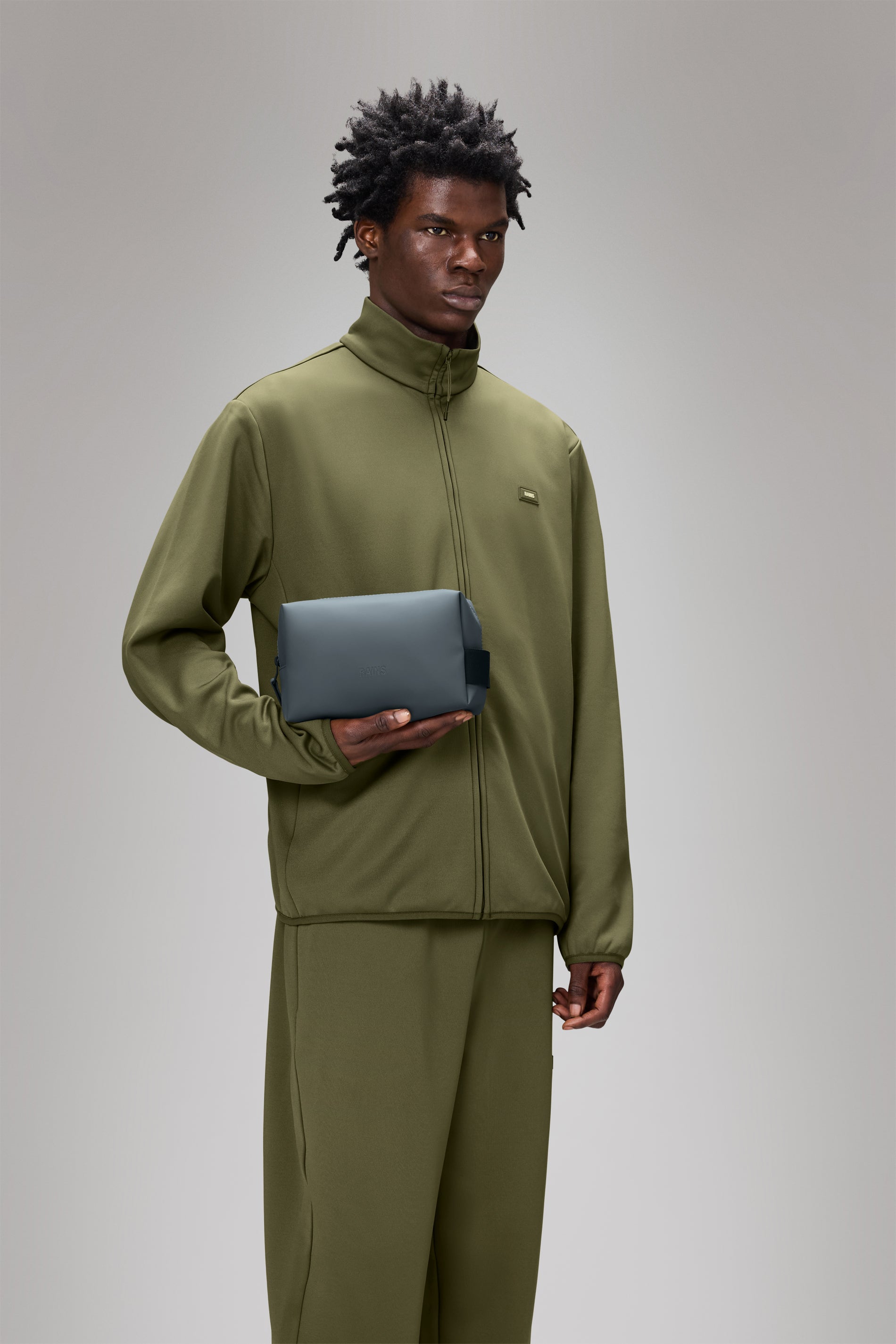 Texel Wash Bag er fremstillet i Rains’ vandtætte signatur PU-materiale, som er designet til at være stærkt og holdbart med en glat finish.