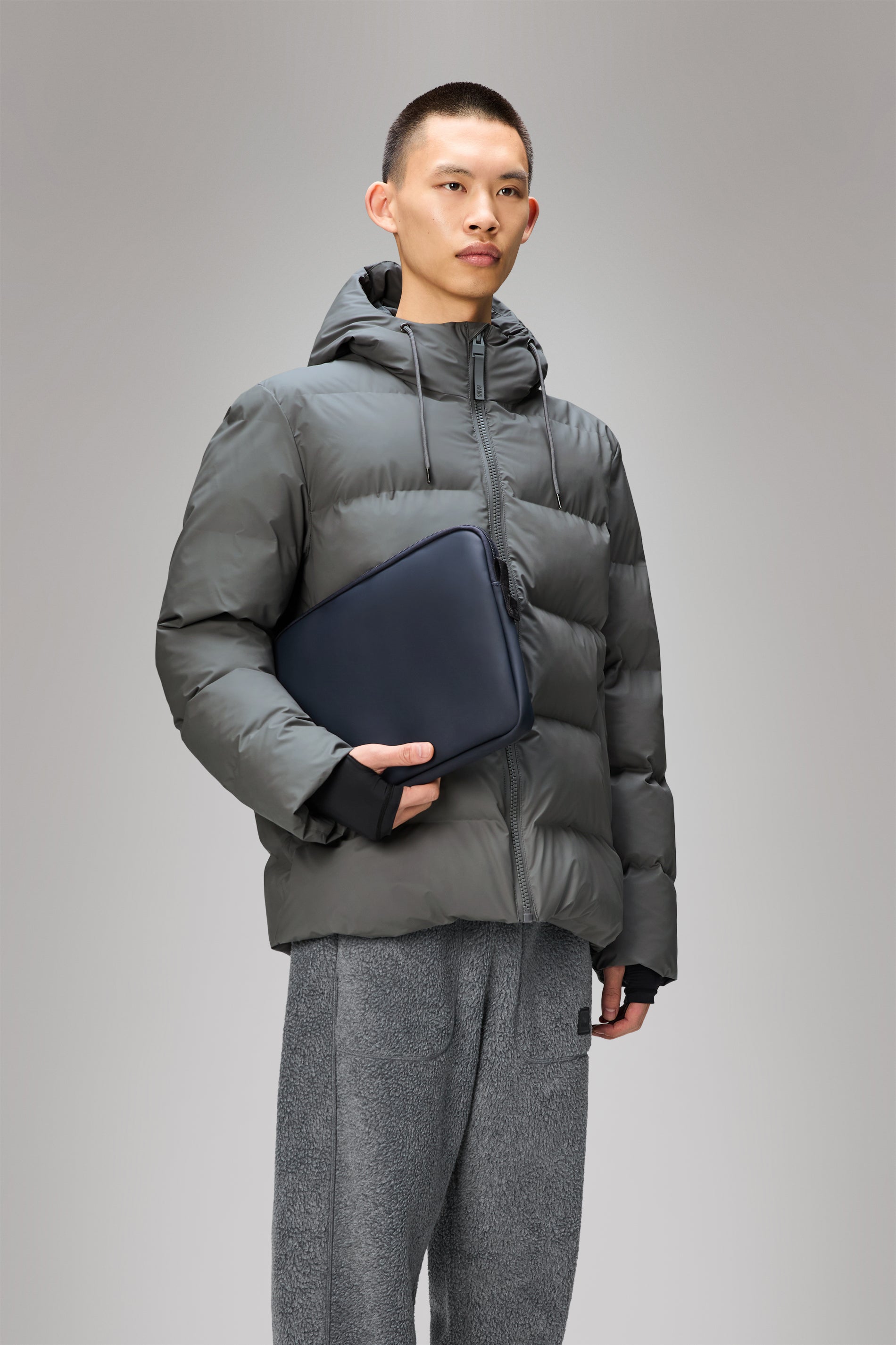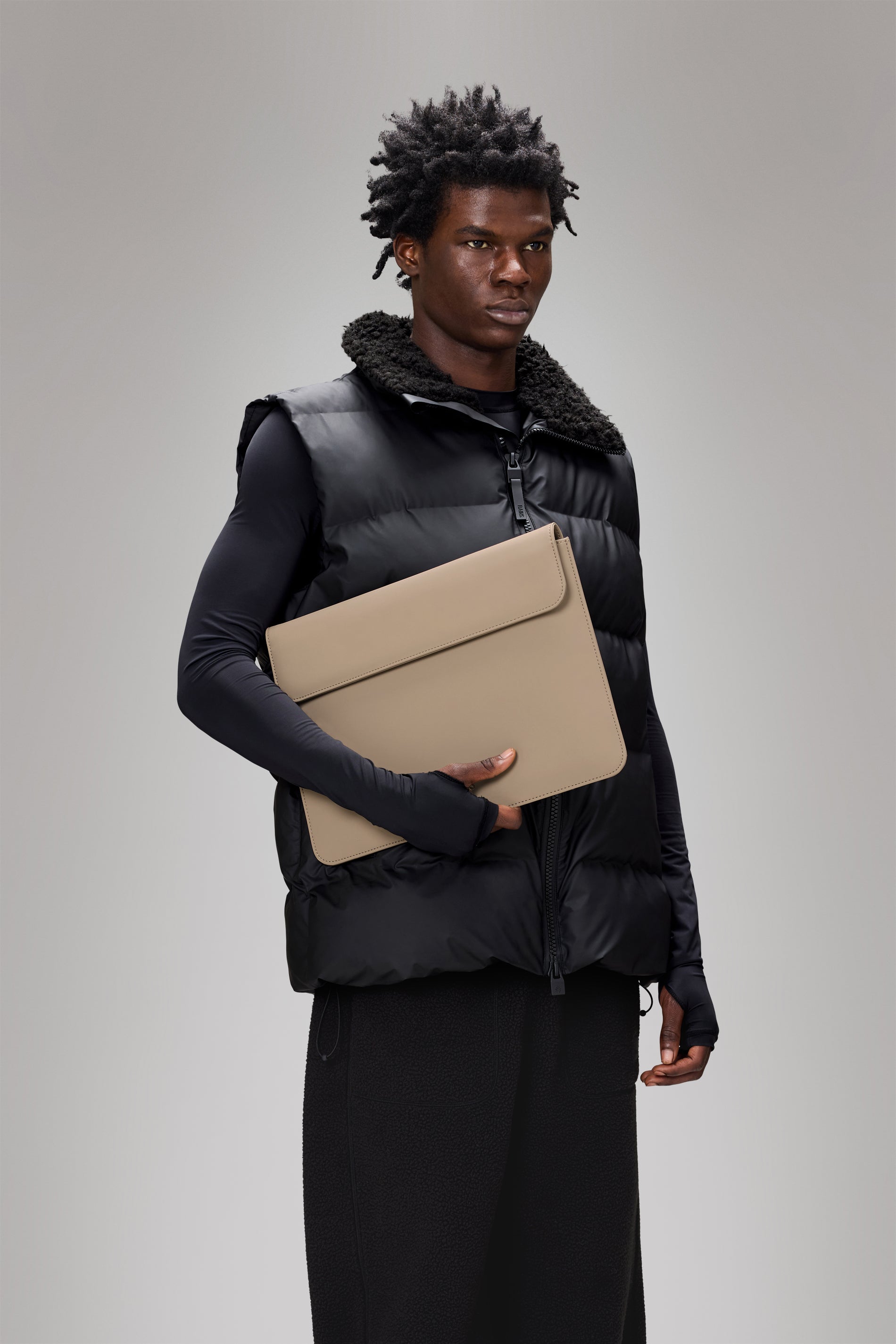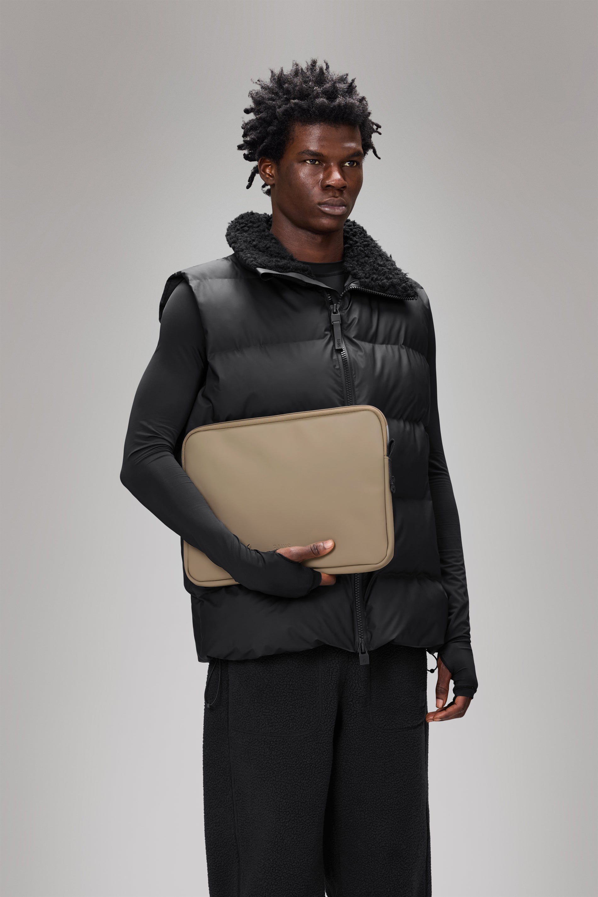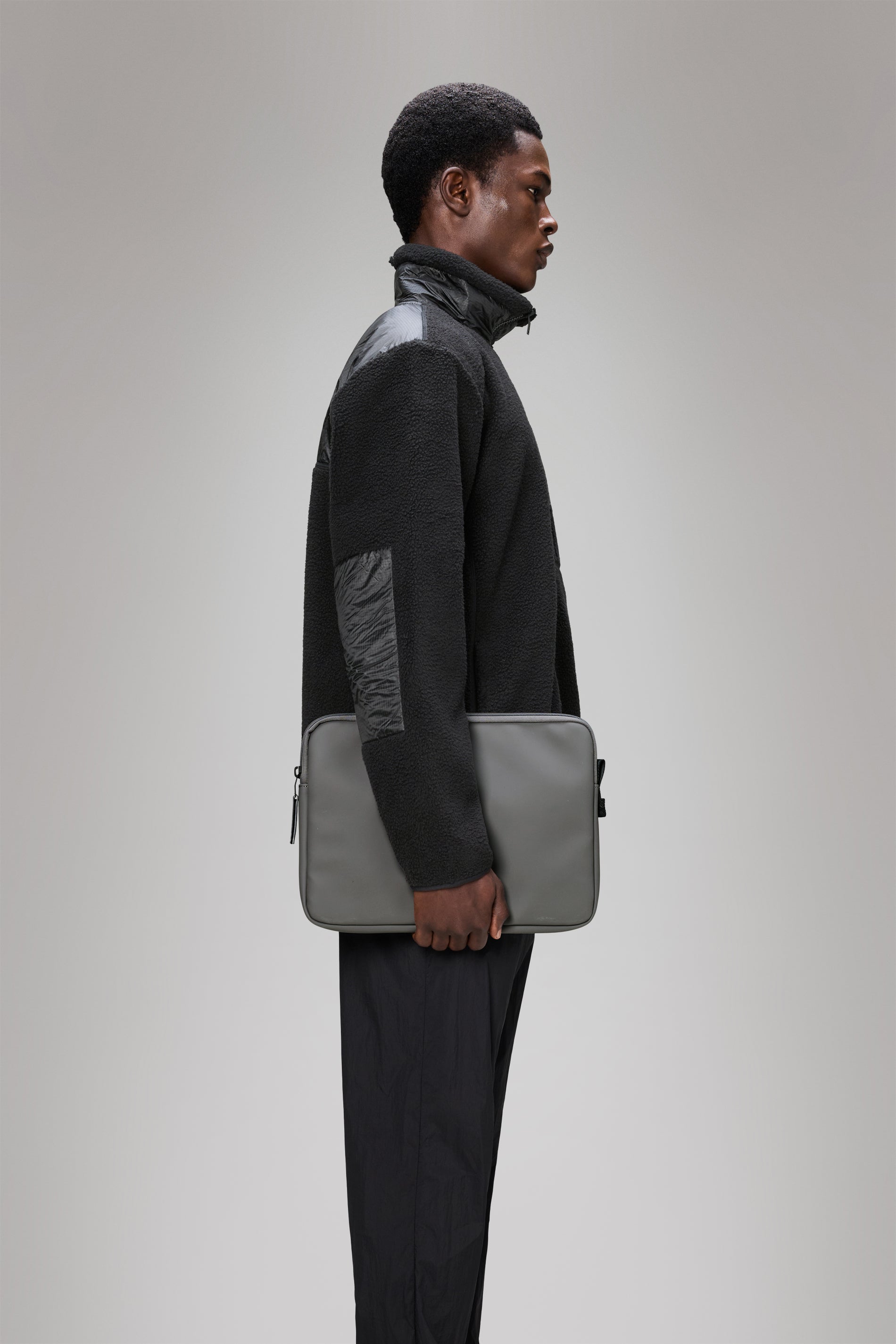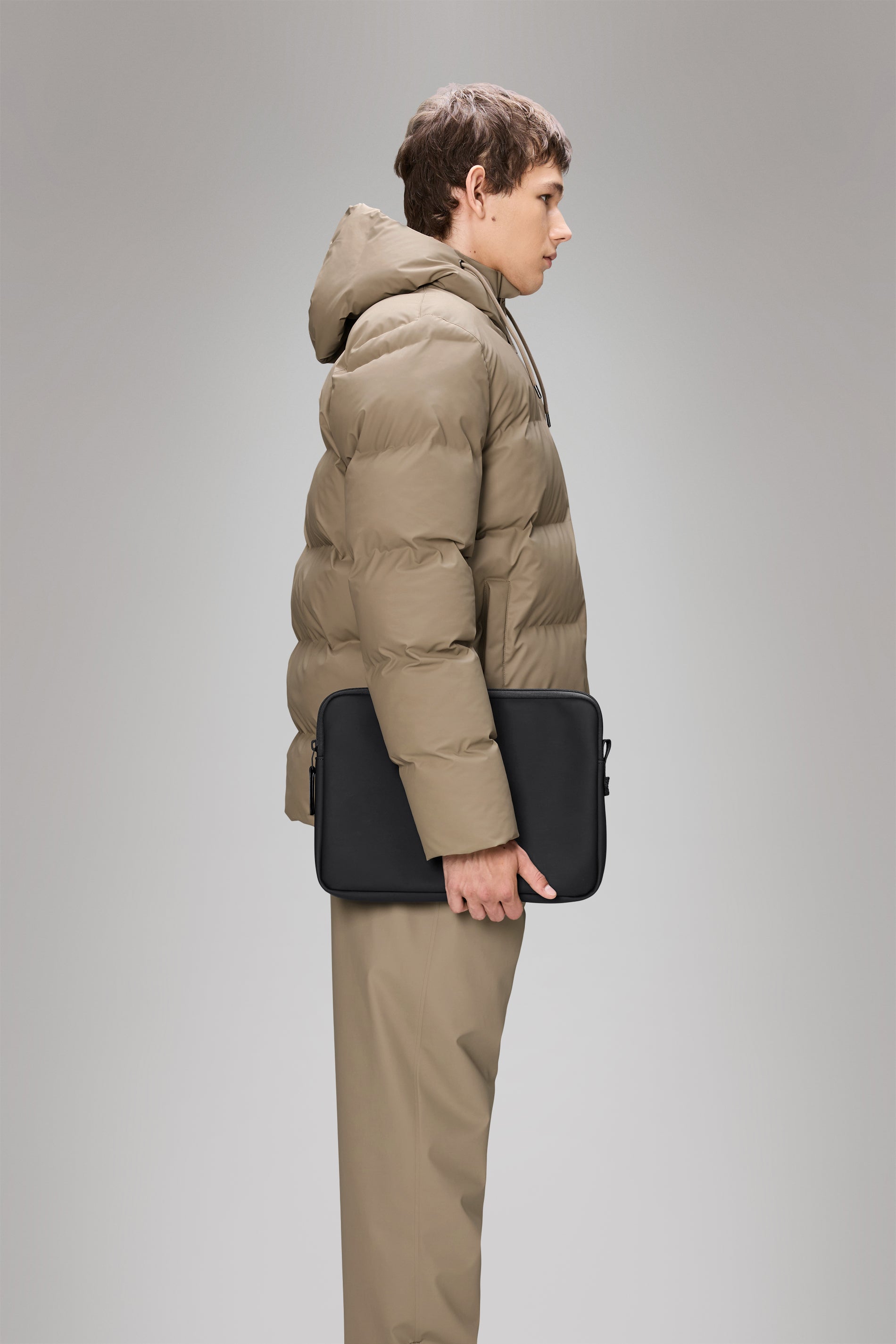 Etuiet, som passer perfekt til 14" laptops, er fremstillet i Rains' vandtætte signatur PU-materiale med beskyttende polstring. Designet omfatter en robust, jacquardvævet strop med logo samt blødt for i mikrofiber, som gør det nemt at tage din enhed ind og ud.