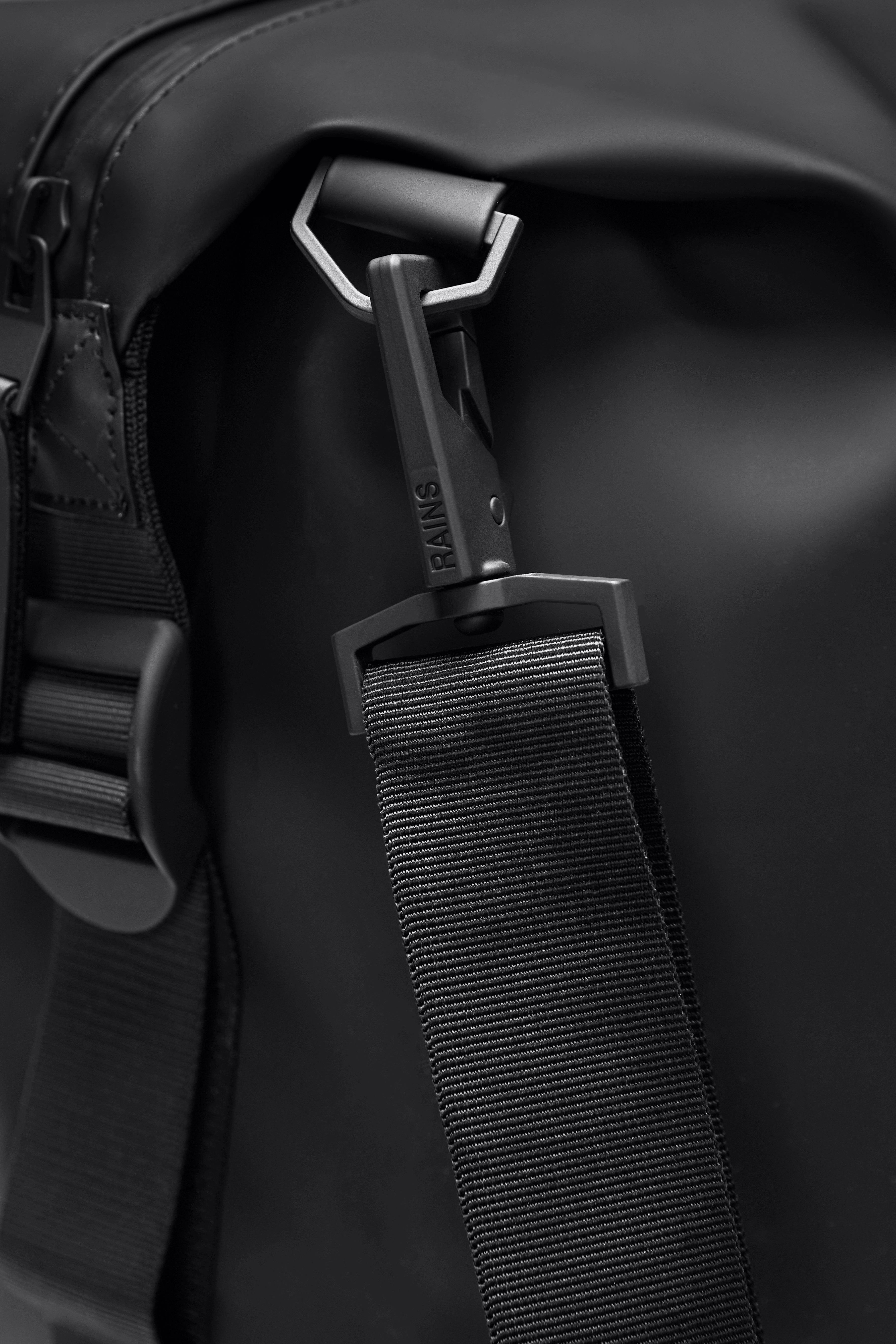 Hilo Weekend Bag Small er fremstillet i Rains’ vandtætte signatur PU-materiale, som er designet til at være stærkt og holdbart med en glat finish.
