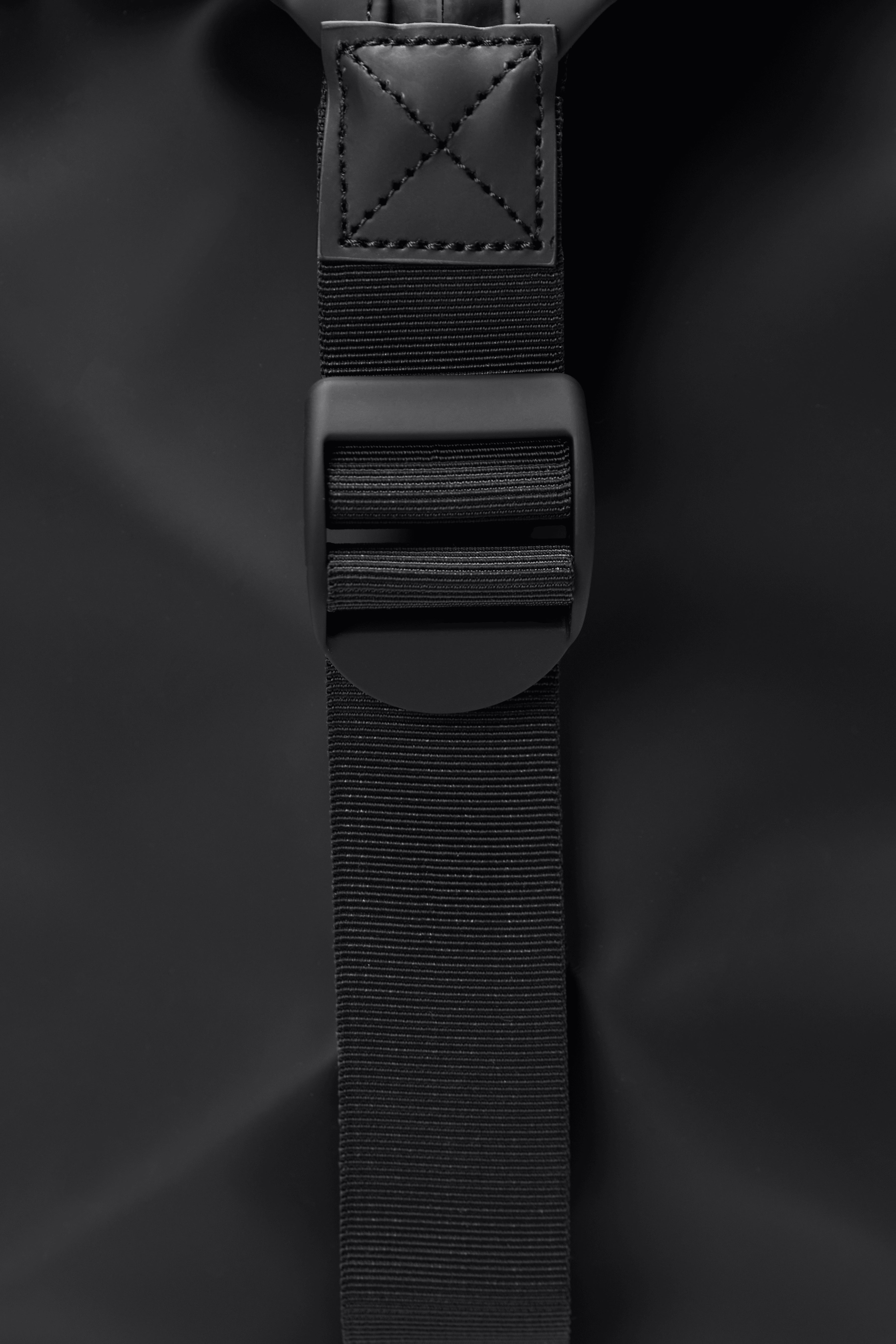 Hilo Weekend Bag Small er fremstillet i Rains’ vandtætte signatur PU-materiale, som er designet til at være stærkt og holdbart med en glat finish.