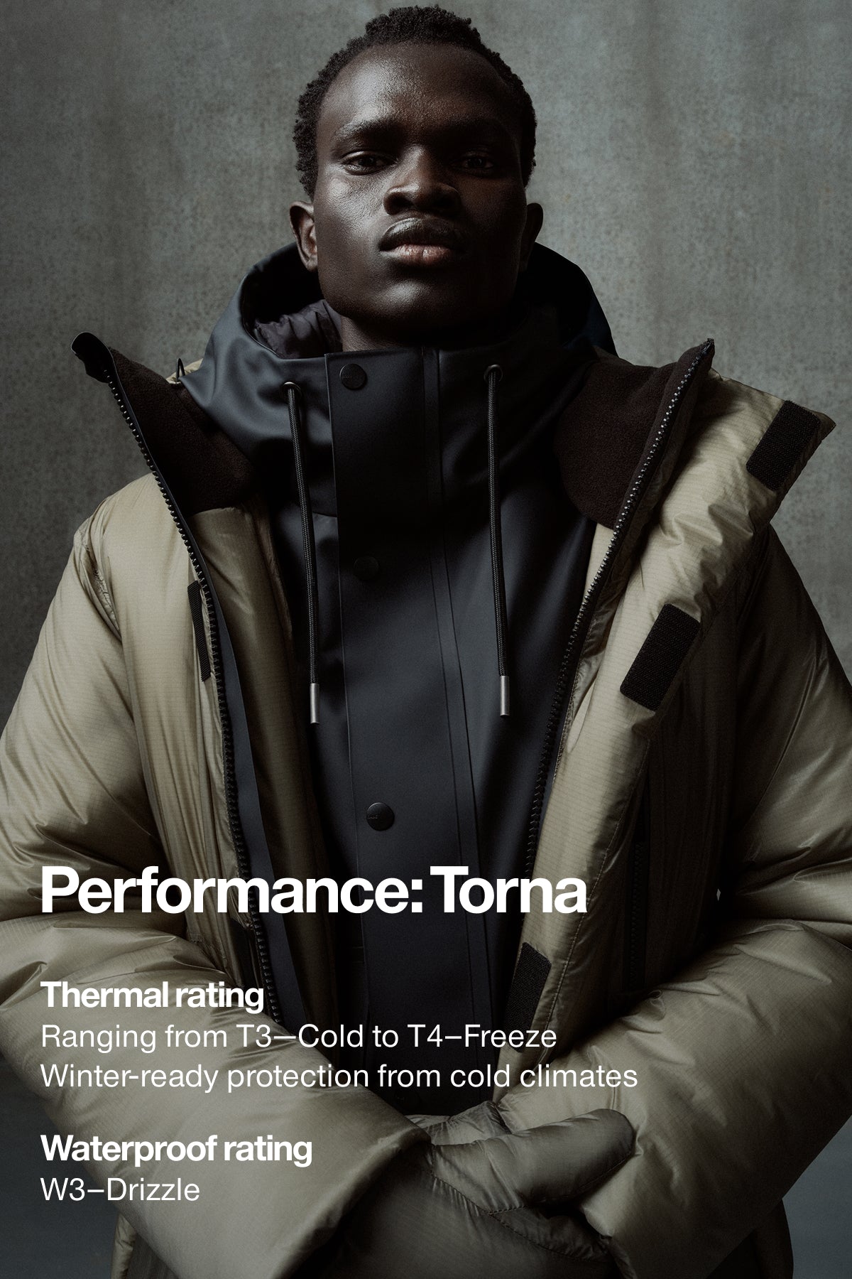 Torna er designet til kolde og våde vinterdage. Den er lavet i slidstærk, vandtæt nylon-ripstop og foret med kraftig isolering, der holder godt på varmen. Justerbare snore og svejsede sømme sikrer ekstra beskyttelse mod vind og vejr. Et teknisk ydre med et rent, premium look.