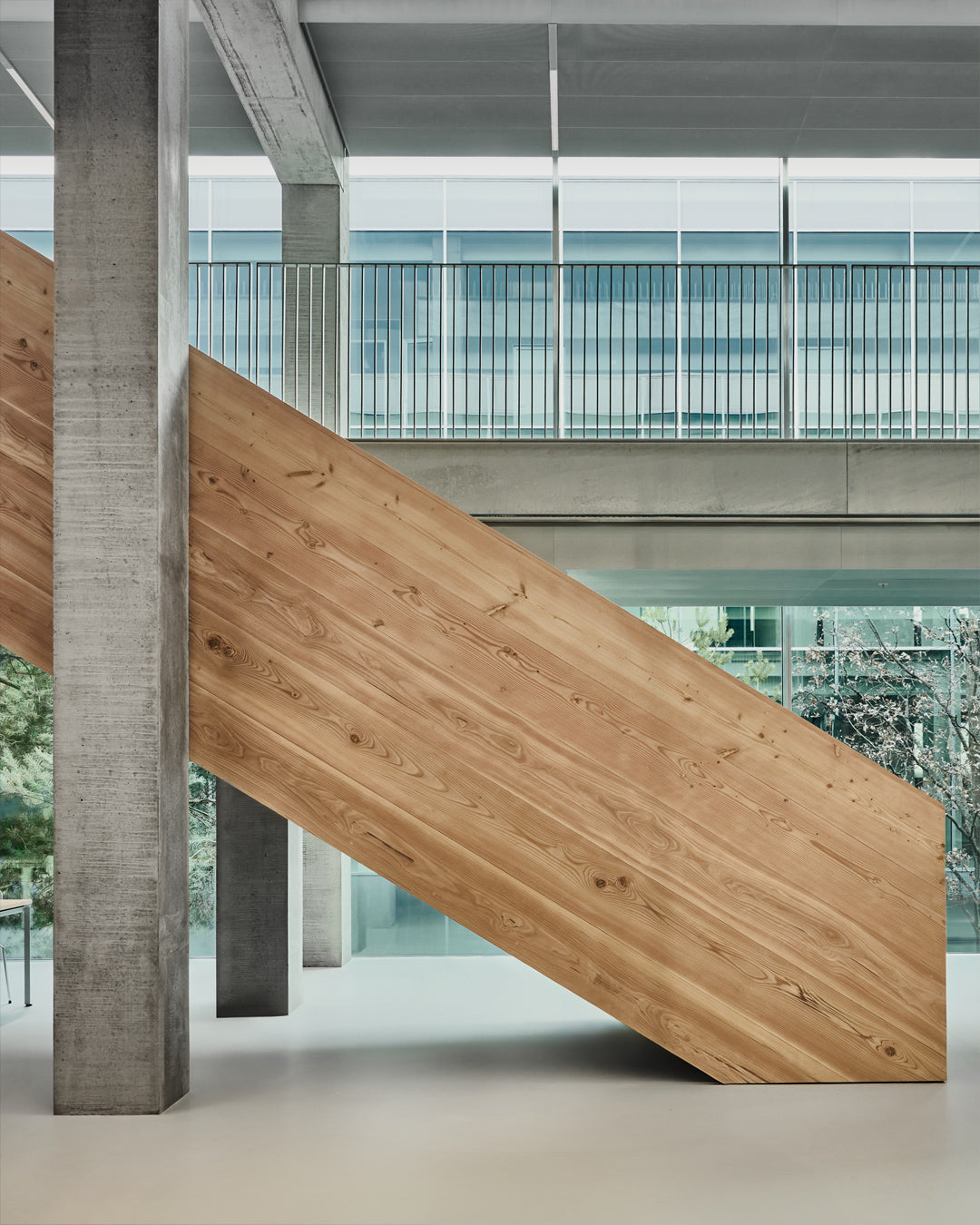 “Designed with complete cohesion and transparency. Facades are unified in material and expression. Glass elements connect the office and warehouse, while columns, beams, and other spatial choices are harmonized.”