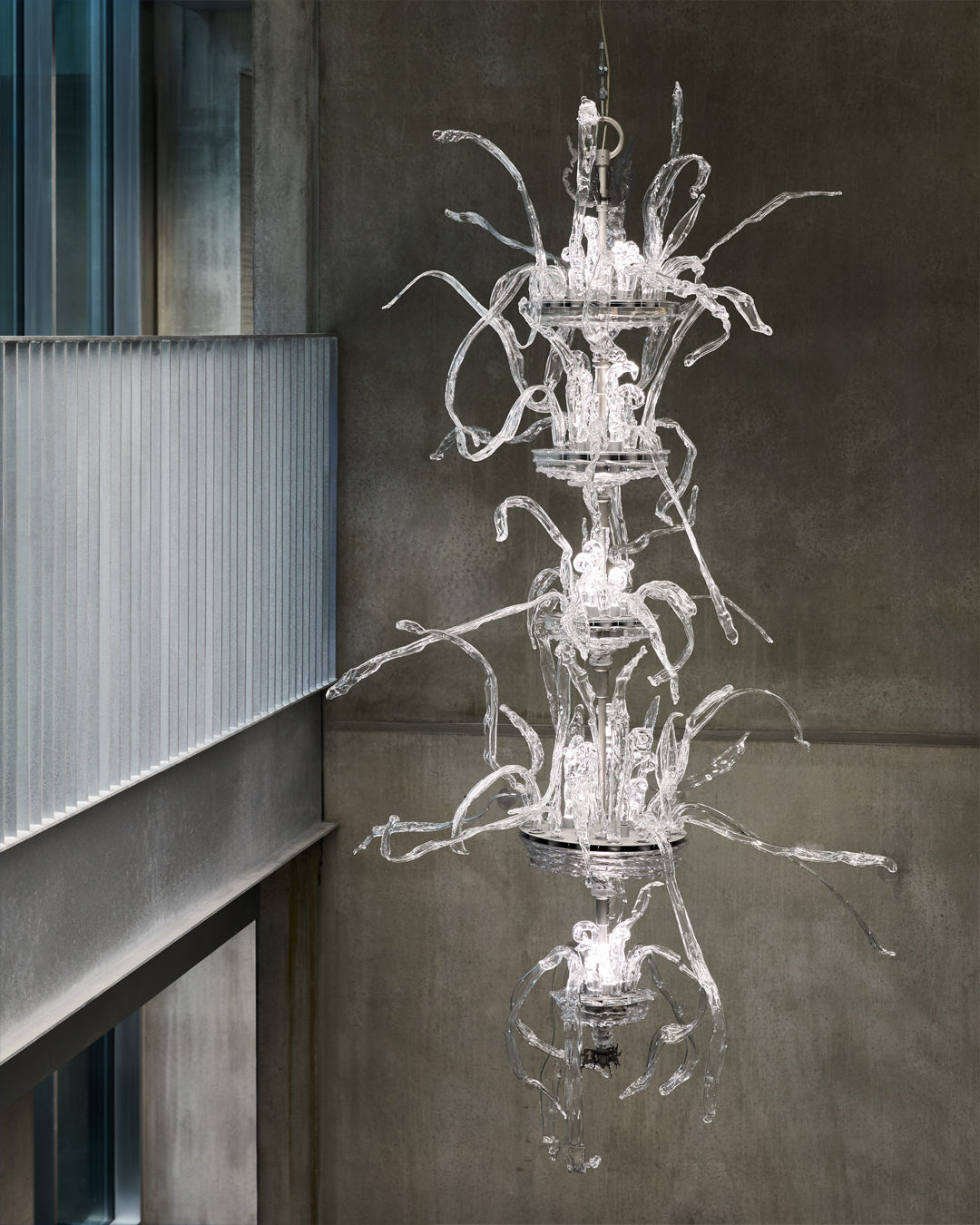 Though on the surface this chandelier may not appear simple, it is quite simply made resembling water frozen in time.