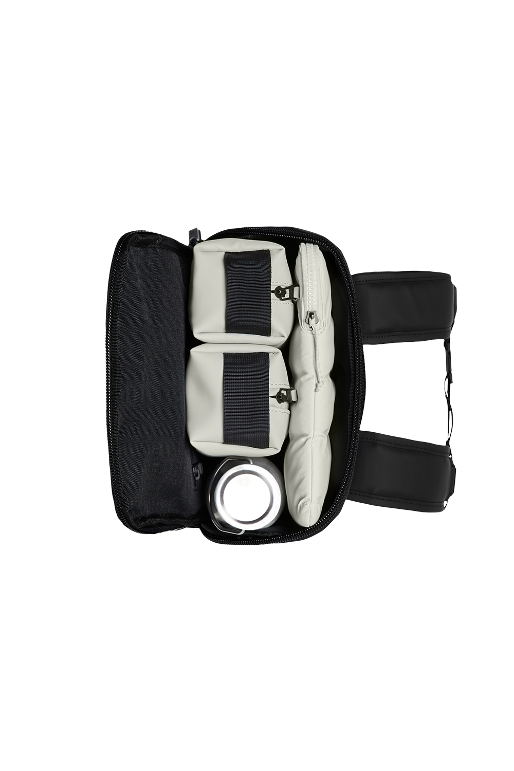 Trail Cargo Backpack er fremstillet i Rains' vandtætte signatur PU-materiale, som er designet til at være stærkt, holdbart og med en glat overflade.